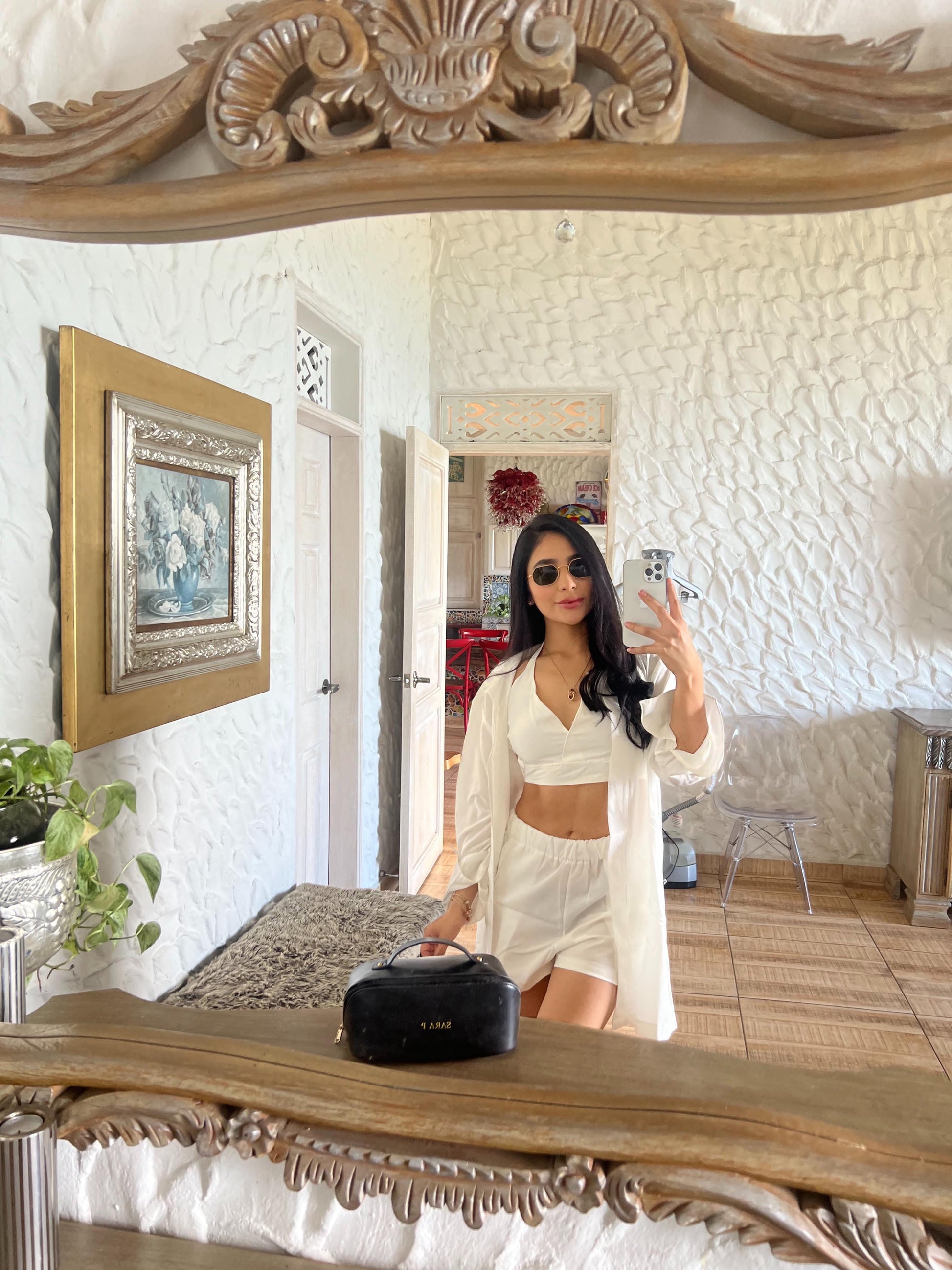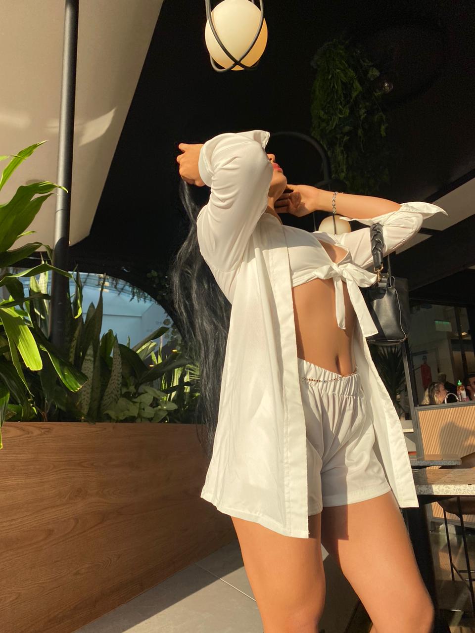 El Set Atenas es la definición de estilo minimalista y versátil. Su diseño en tres piezas (top con lazo, short de pretina elástica y blazer ligero) te permite crear múltiples looks con un solo conjunto. Fresco, elegante y cómodo, es ideal tanto para la playa como para un brunch con amigas o una salida casual en la ciudad.