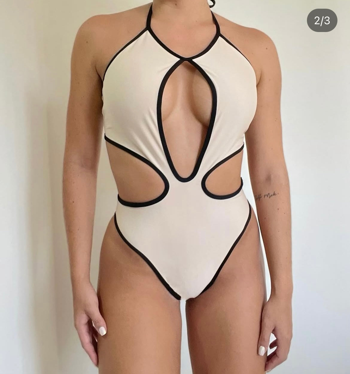 El Enterizo Ébano combina sensualidad y elegancia en una sola pieza. Su diseño en tono nude estiliza la silueta, mientras que los cortes estratégicos realzan la figura de manera sutil y favorecedora. Los bordados en negro aportan contraste y sofisticación, convirtiéndolo en un traje de baño perfecto para quienes buscan un look llamativo y refinado.